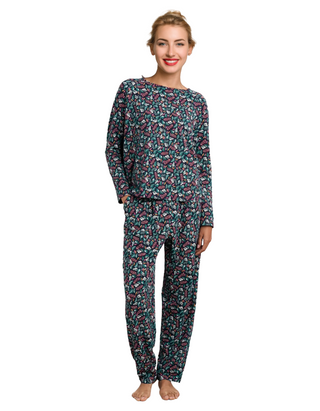 Women's Setting Sun Pyjama Set in Sunlit Leaves Dark Jade