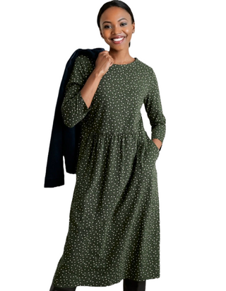 Women's Sea Strew 3/4 Sleeve Dress in Green Tulip Stitch Beech