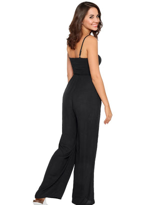 Women's Tall Size Crinkle Wide Leg Jumpsuit in Black (Imperfect)