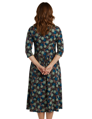 Women's 3/4 Sleeve Wild Bouquet Dress in Folk Vines Maritime