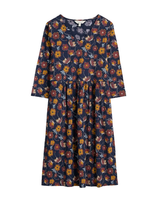 Women's Cladonia Long Sleeve Jersey Dress in Navy Cyclamen