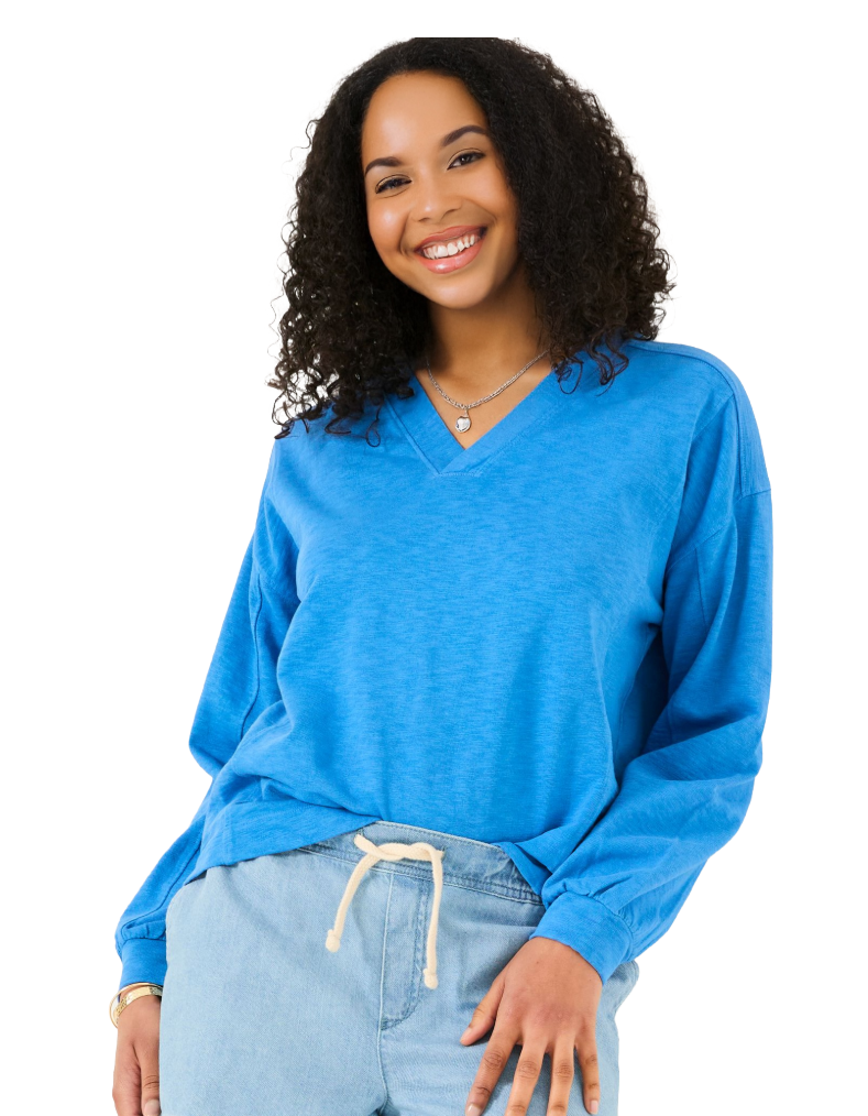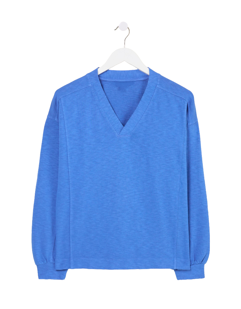 Women's Gigi V Neck Sweatshirt in Mid Blue