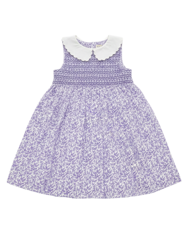 JoJo Maman Girls' Collar Ditsy Floral Smocked Dress in Purple