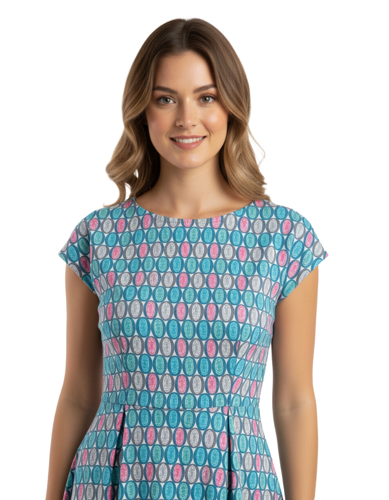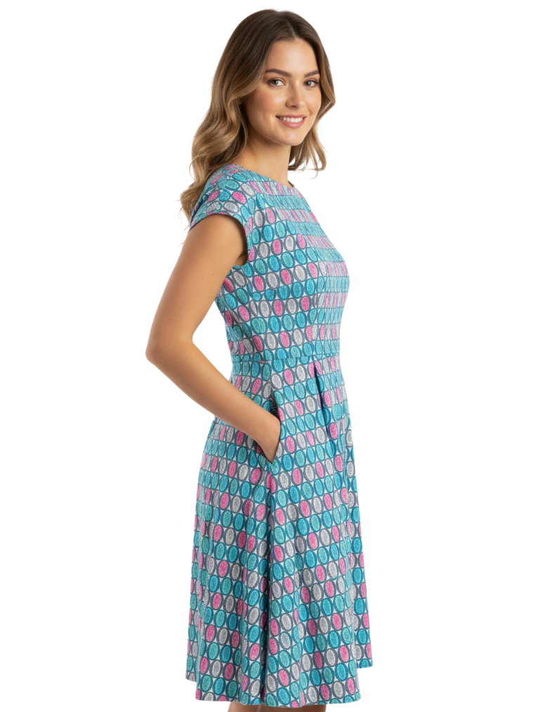 Women's Printed Talskiddy Dress in Blue Colourblock