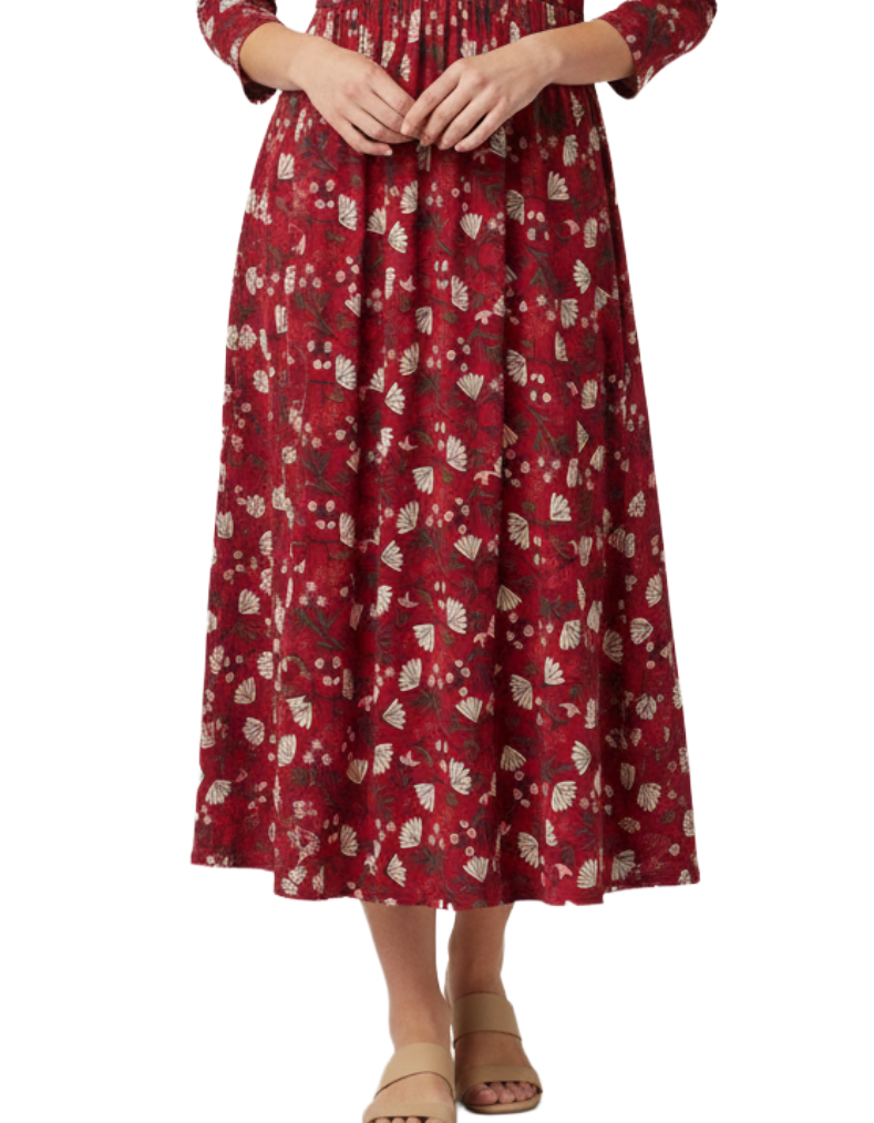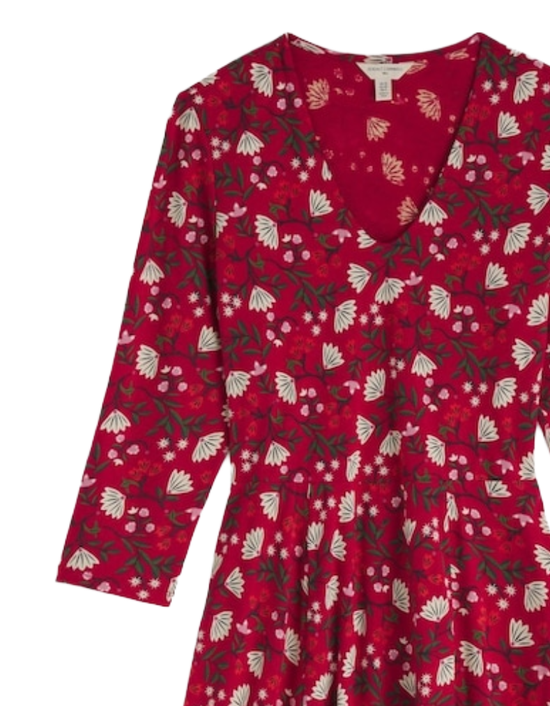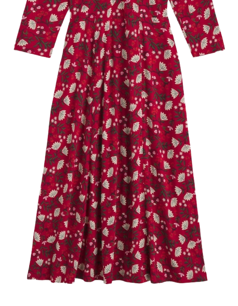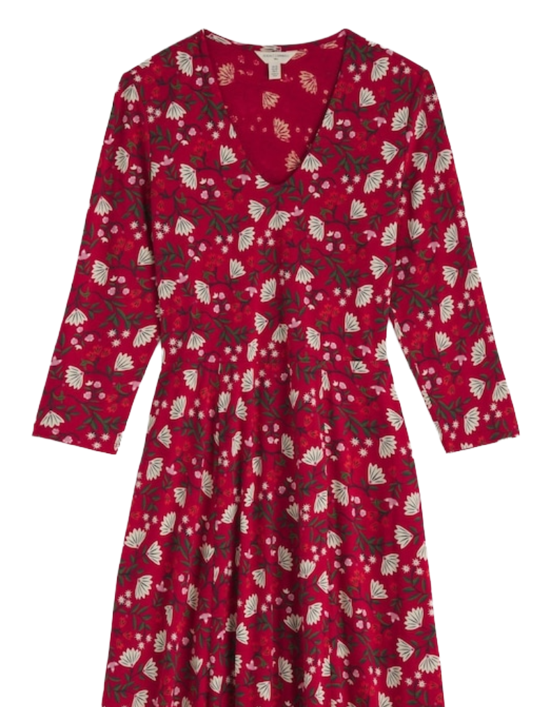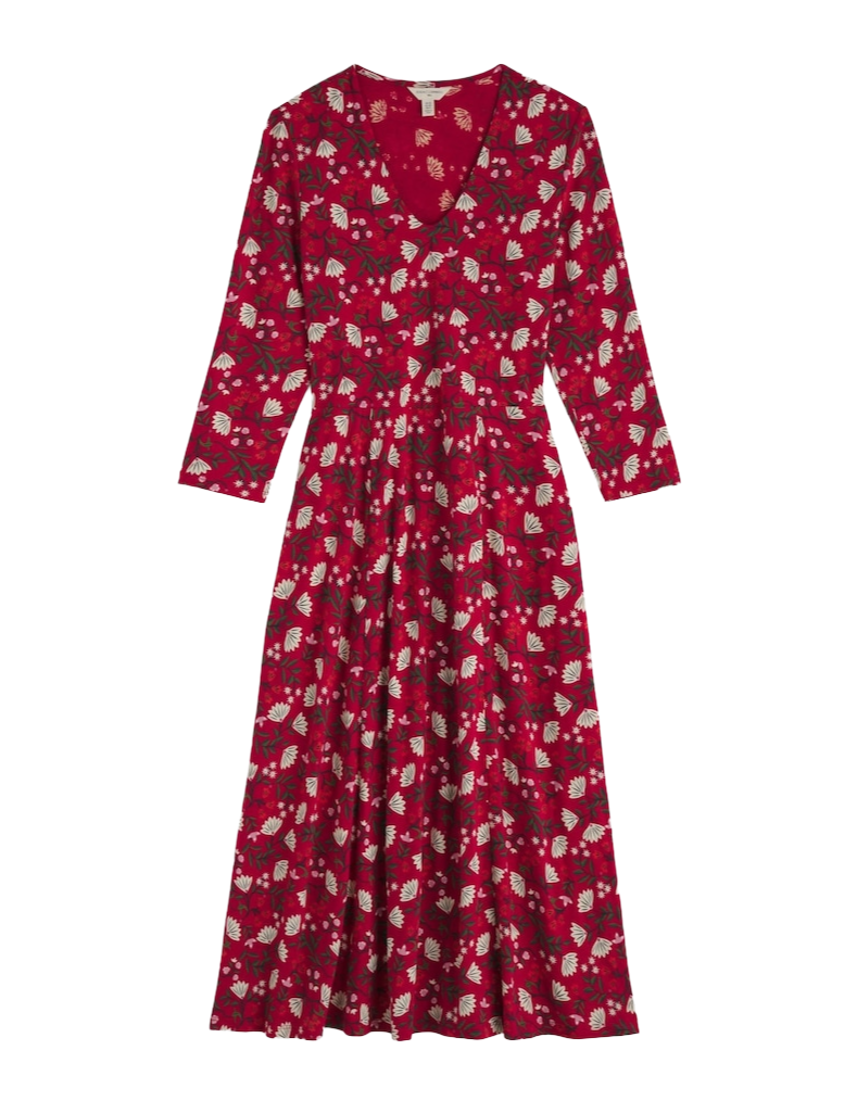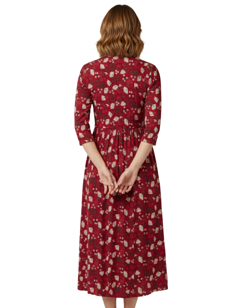 Women's 3/4 Sleeve 3/4 Nancy Dress in Winter Wildflower Carmine
