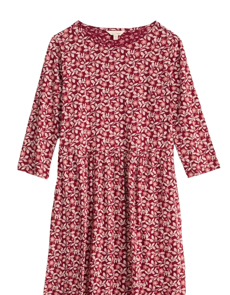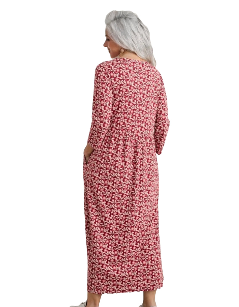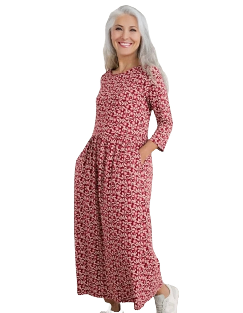 Women's 3/4 Sleeve Guelder Rose Organic Cotton Jersey Dress in Red