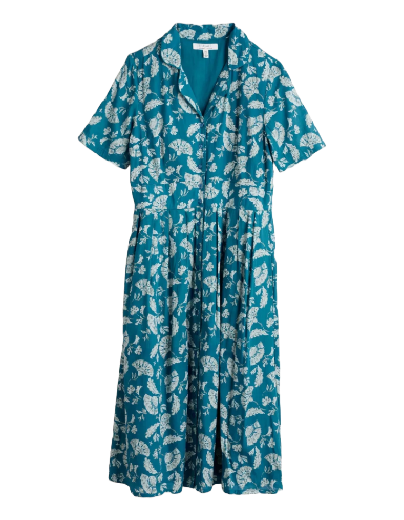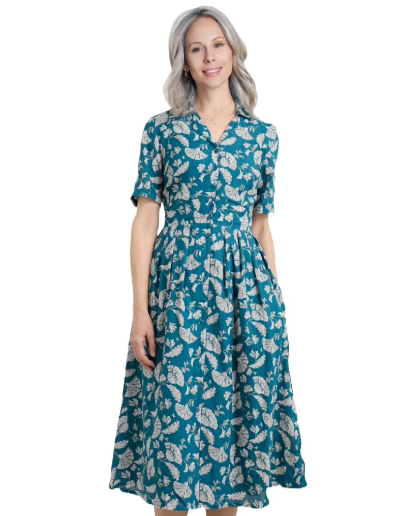 Elevate your wardrobe with our Women's Charlotte Dress. Inspired by vintage tea dresses, this midi length shirt dress exudes elegance and timeless style. Made from soft cotton voile with a full skirt and front buttons, it features piped trims, in-seam pockets, and our chic seasonal prints. Imperfect never looked so perfect.