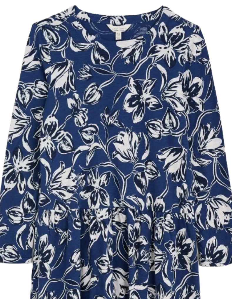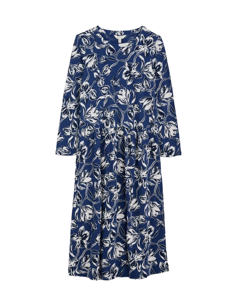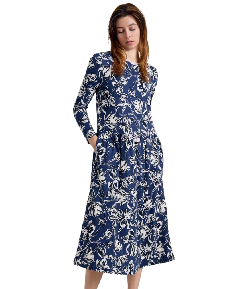 Women's Cladonia Long Sleeve Jersey Dress in Navy Cyclamen