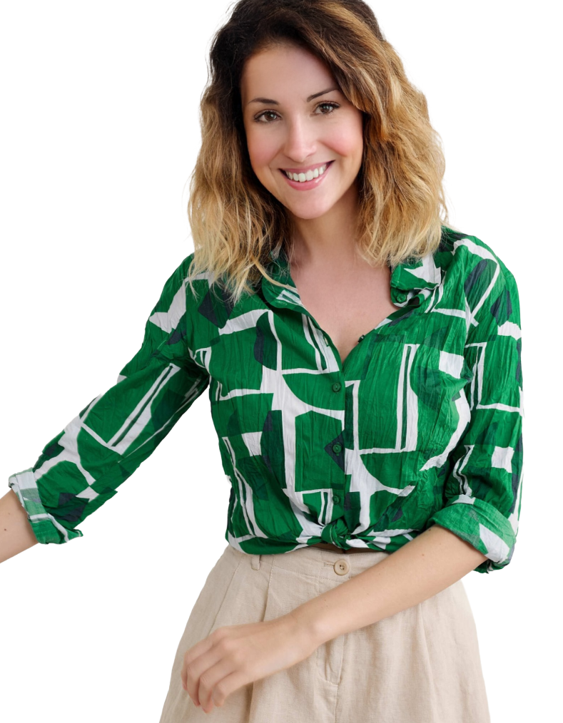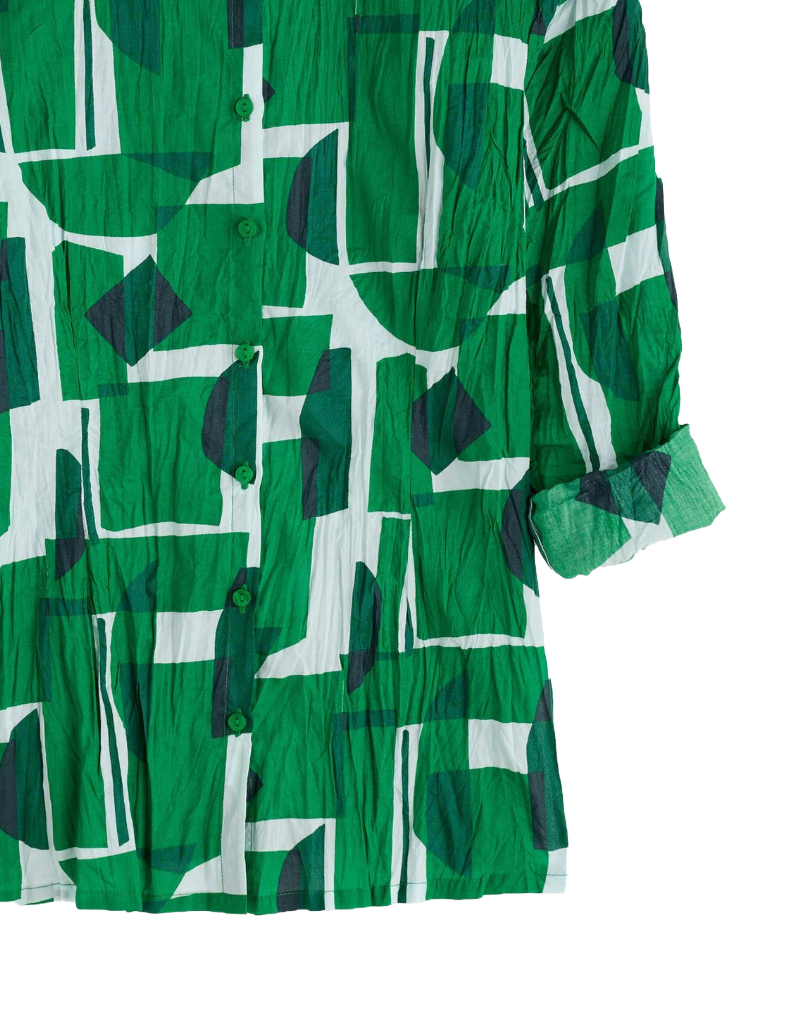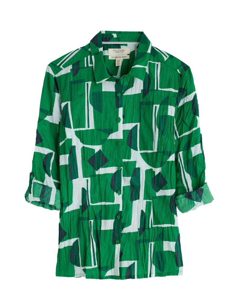 Crafted from organic cotton, this Women's Cotton Larissa Shirt features a striking statement print that captures contemporary design sensibilities. The garment arrives twisted, creating an intentional crinkle effect that adds distinctive character and texture to the fabric. This natural creasing develops organically with wear, enhancing the shirt's unique aesthetic. The imperfect finish celebrates individuality, making each piece genuinely one-of-a-kind. Ideal for those seeking sustainable fashion with personality and visual interest.