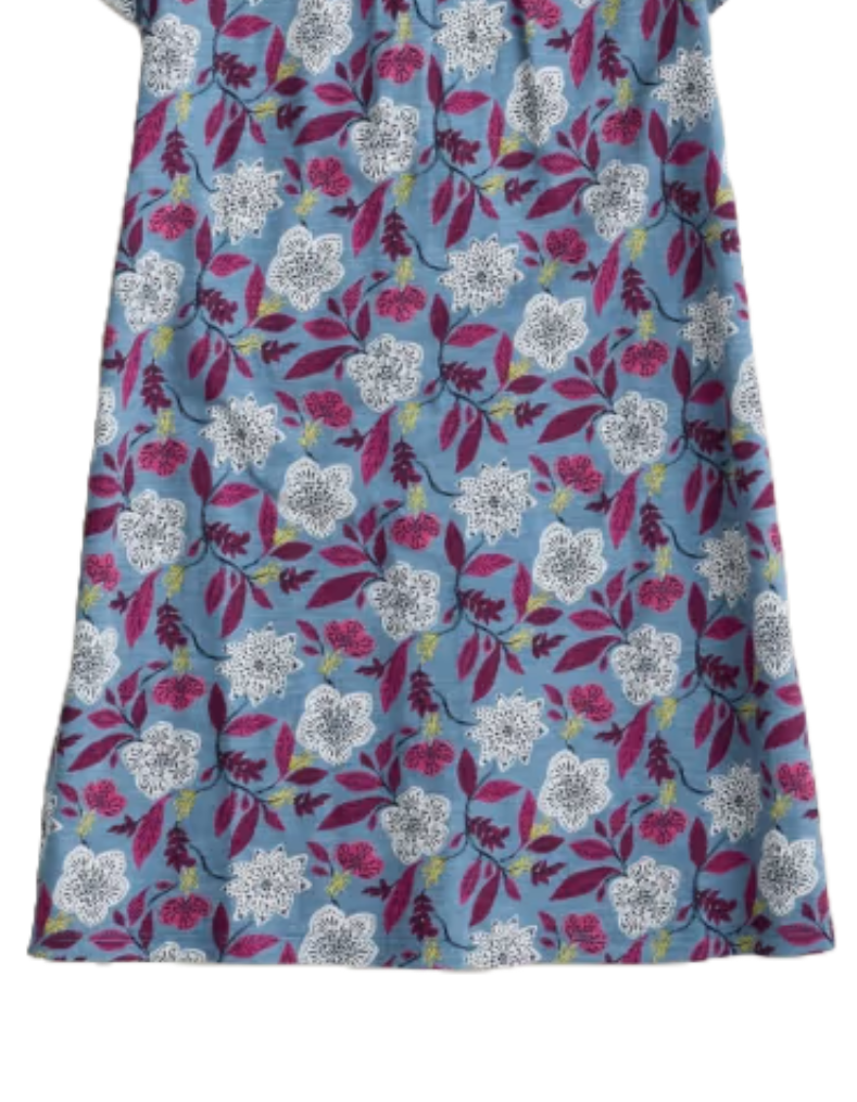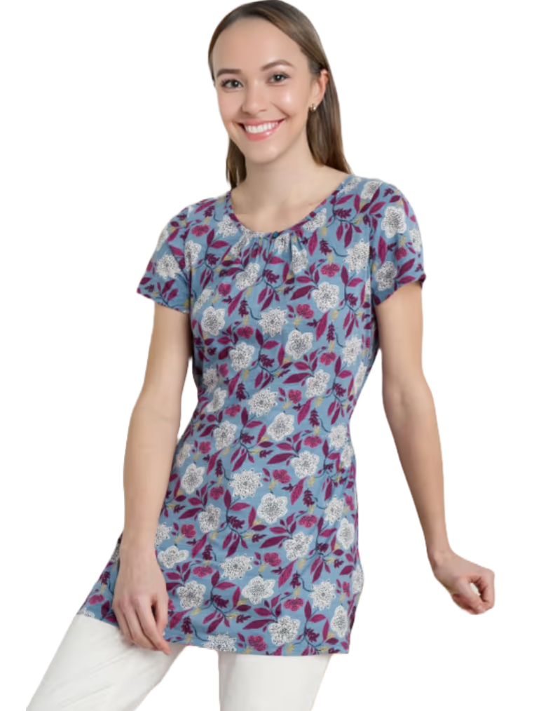 Women's Countryside Print Jersey Tunic in Blue Stone Flower Saltwater