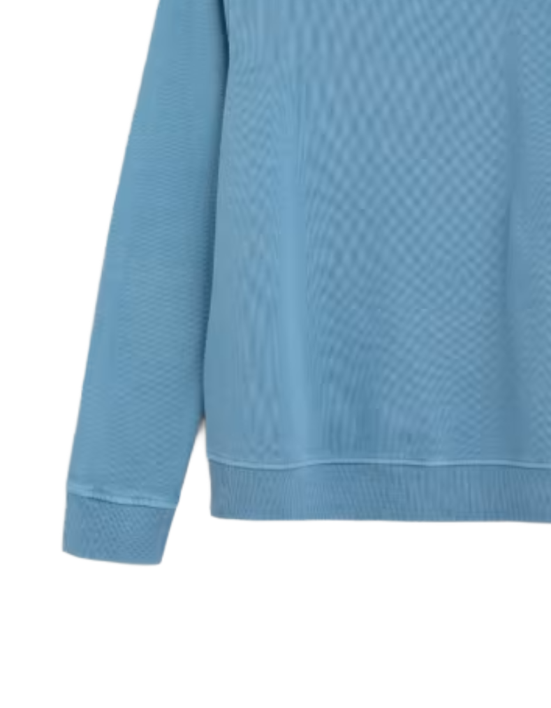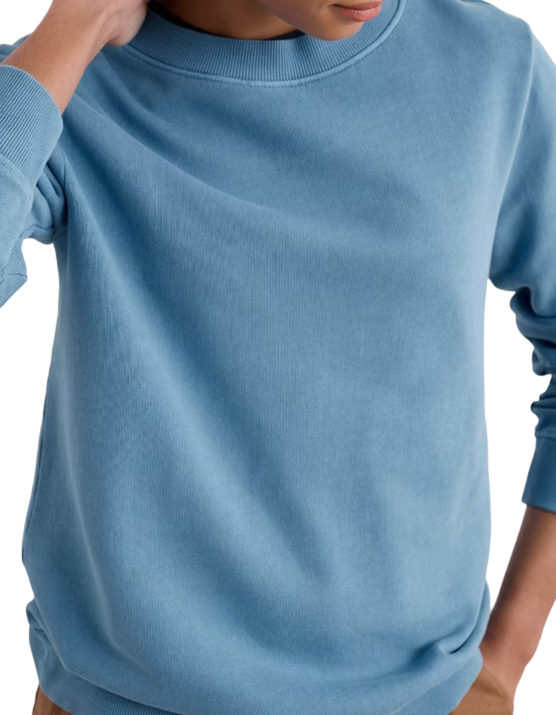 Crafted from soft organic cotton jersey, this classic crew neck sweatshirt features garment dyeing that creates rich, characterful colour with natural variation. The comfortable ribbed hem and cuffs provide a refined fit that works equally well for everyday errands or relaxed days at home. A versatile wardrobe essential that combines comfort with sustainable craftsmanship.