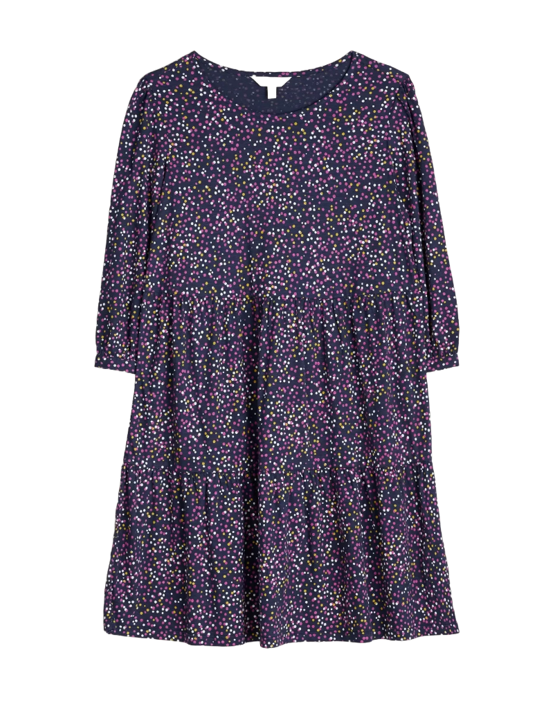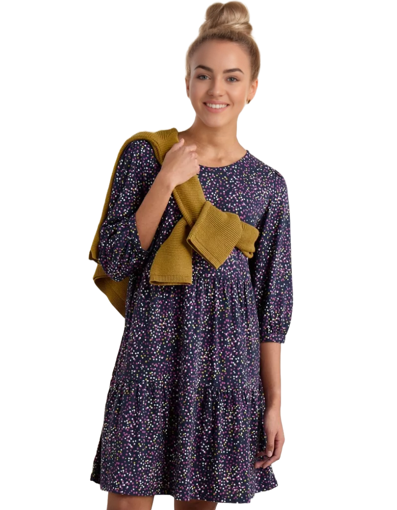 Women's Heron Dip Tiered Jersey Dress in Navy Dotted Pabble