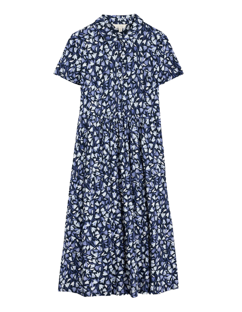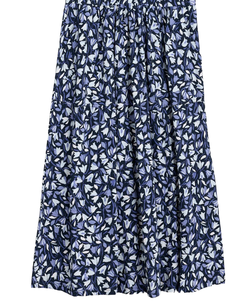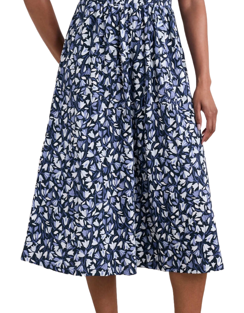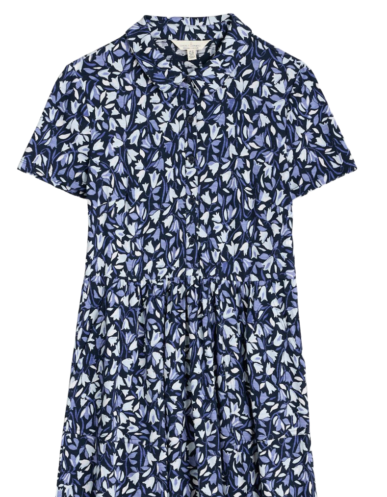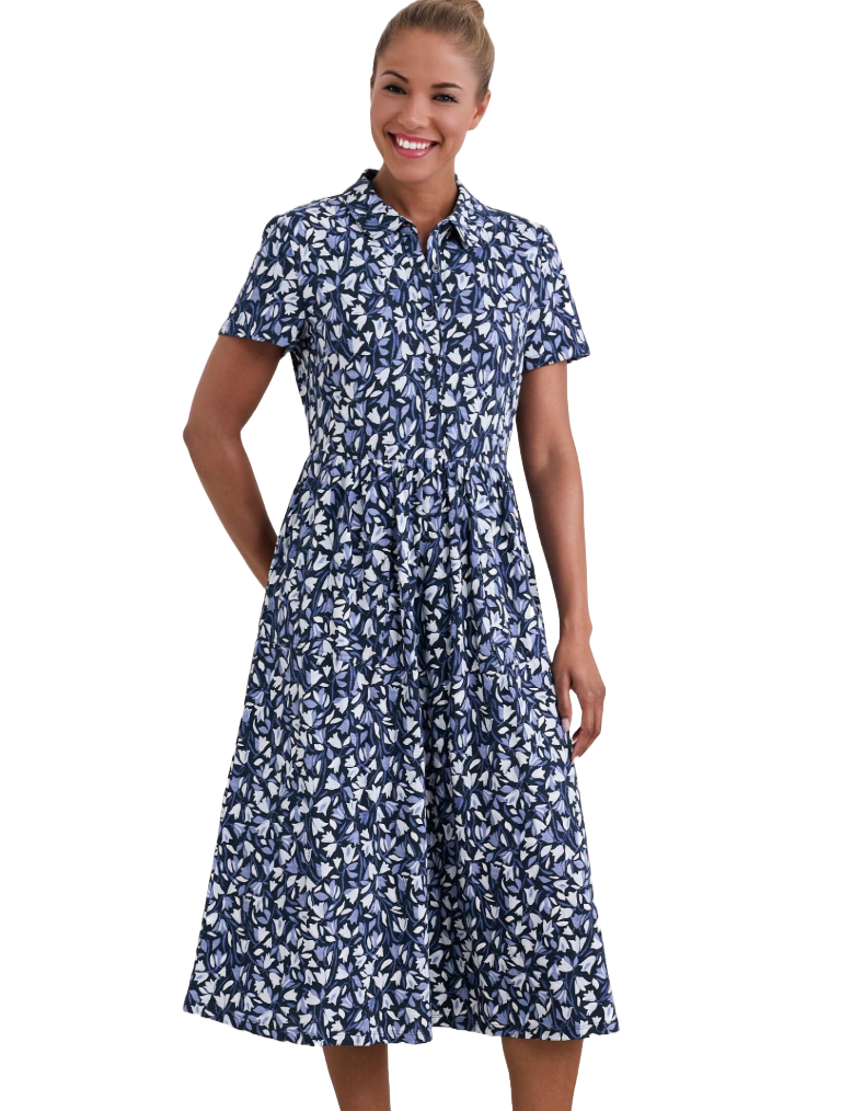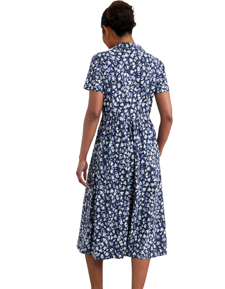 Women's Long Sleeve Mainland Jersey Dress in Meadow Harebells Maritime Navy