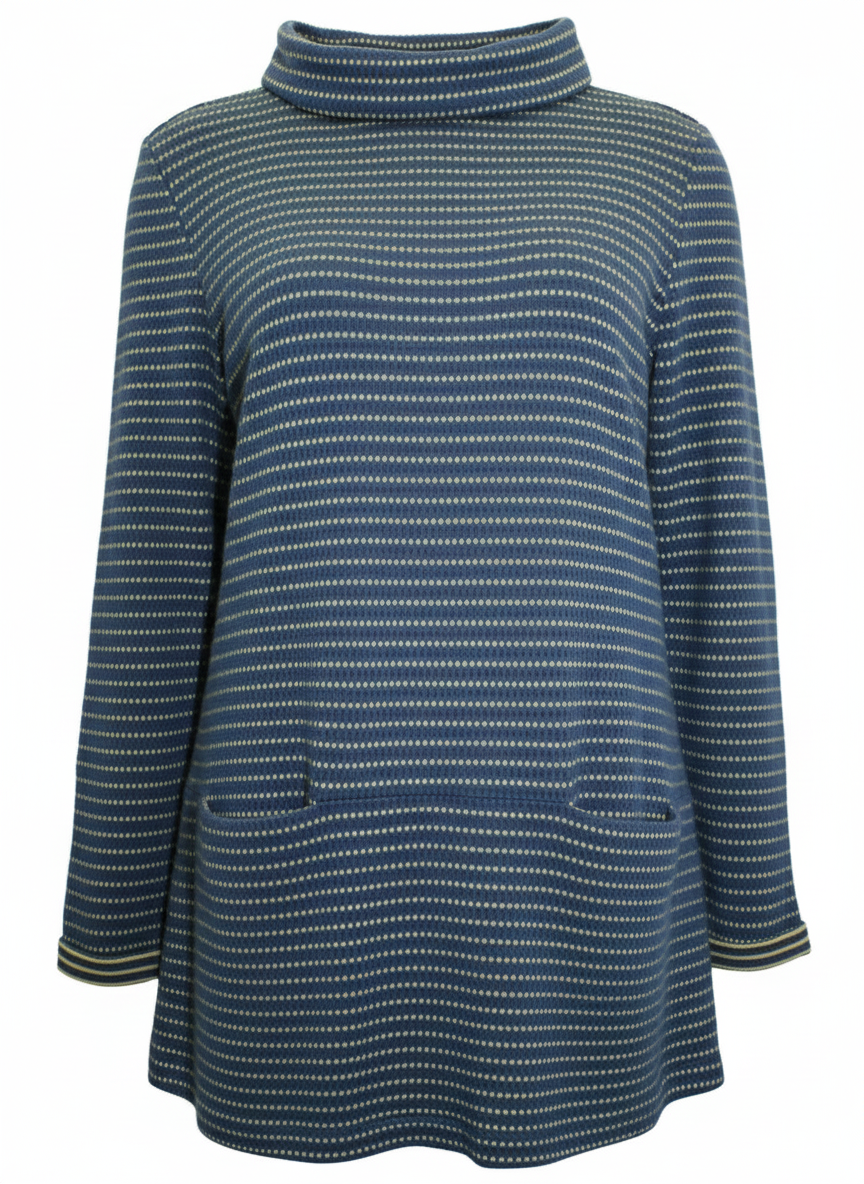 The Seasalt Mawgan Porth Tunic in Drop Stone Waterline Spice combines effortless style with tactile comfort. Crafted from soft cotton jersey, this relaxed tunic features a distinctive raised stripe pattern with a contrasting fixed turn-up cuff that adds visual interest. The elegant Hepburn neckline and flat in-seam front pockets deliver both sophistication and practicality. Ideal for layering during cooler months, whether you're settling in at home or working from your desk, this versatile piece transitions seamlessly between casual and considered dressing.