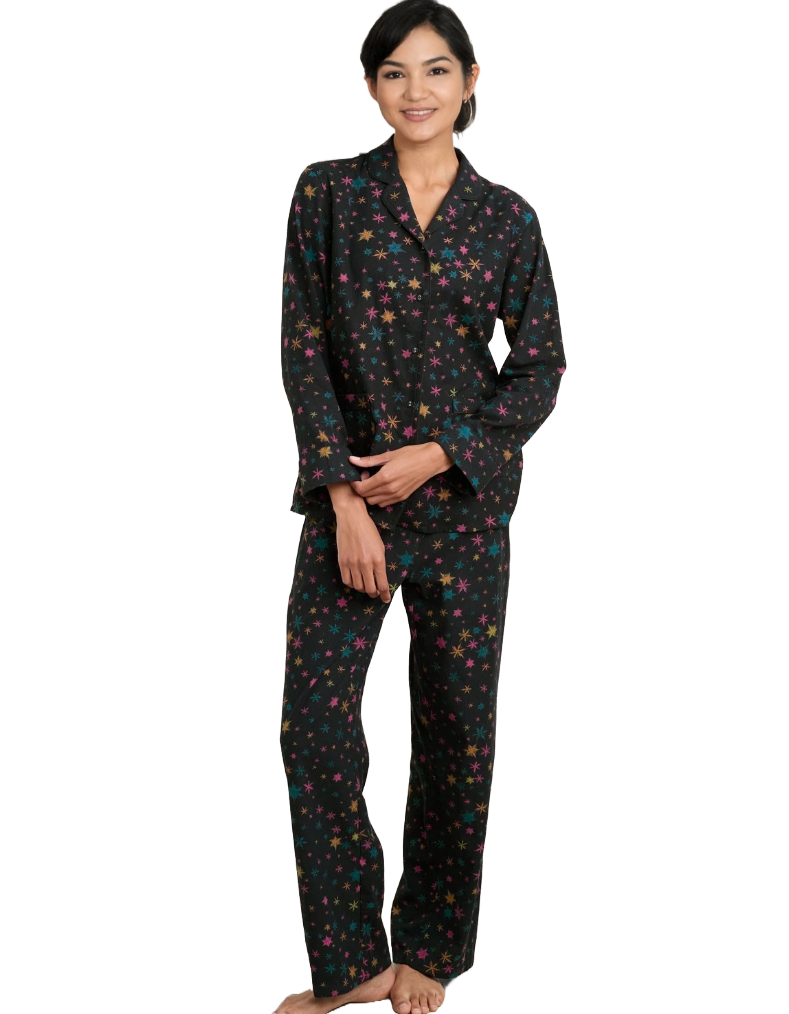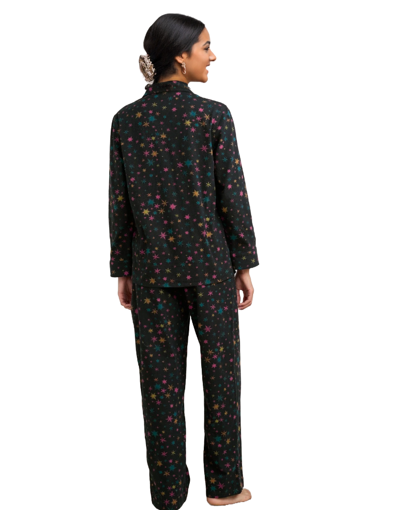 Women's Pyjamas Simple Stars Flannel Pyjamas in Black Snow Star