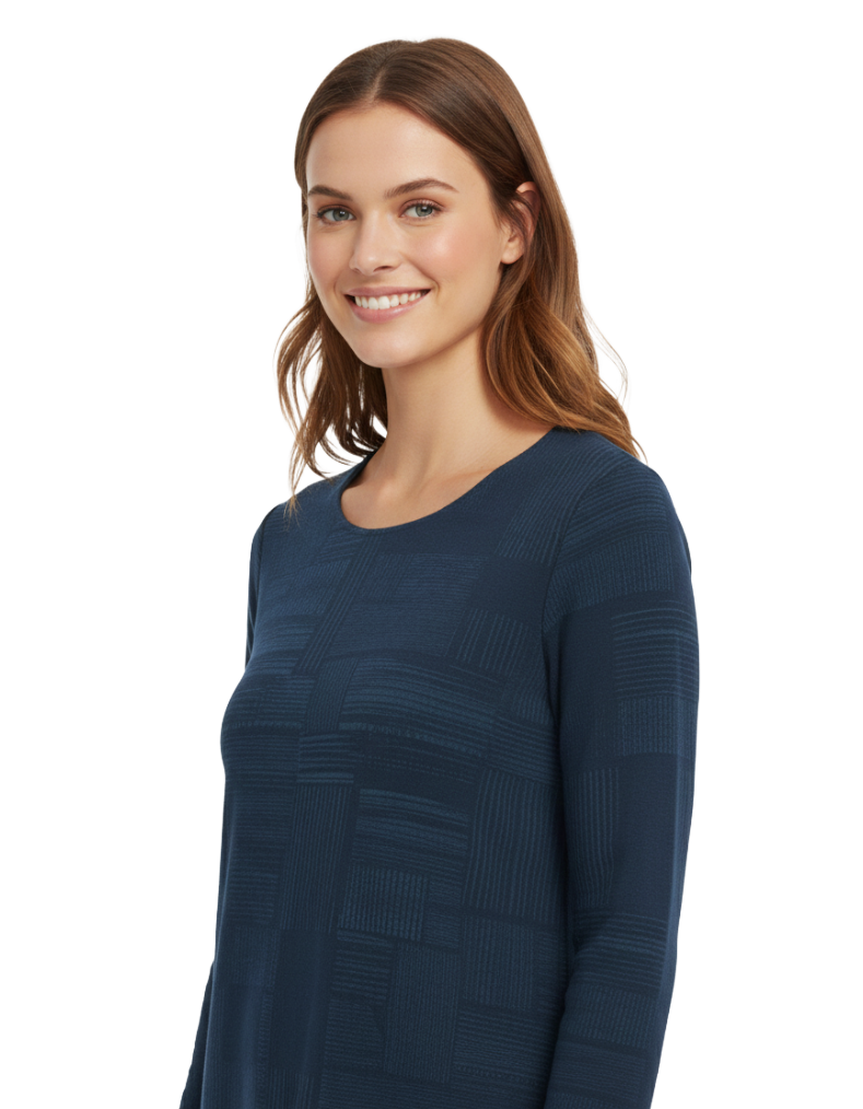 Women's Quarter Sleeve Salt Cove Tunic in Linear Check Midnight