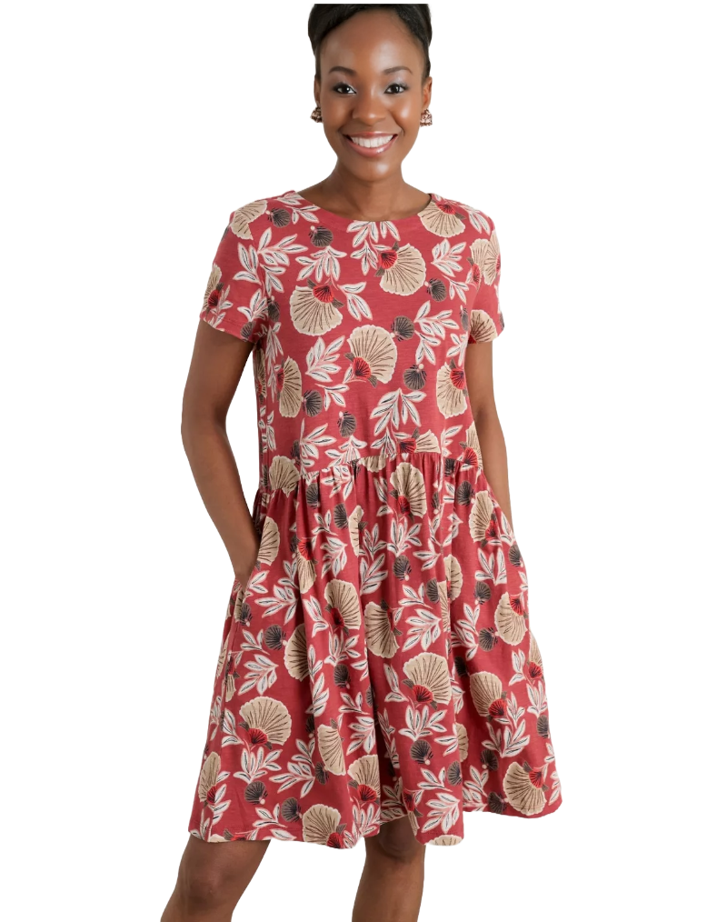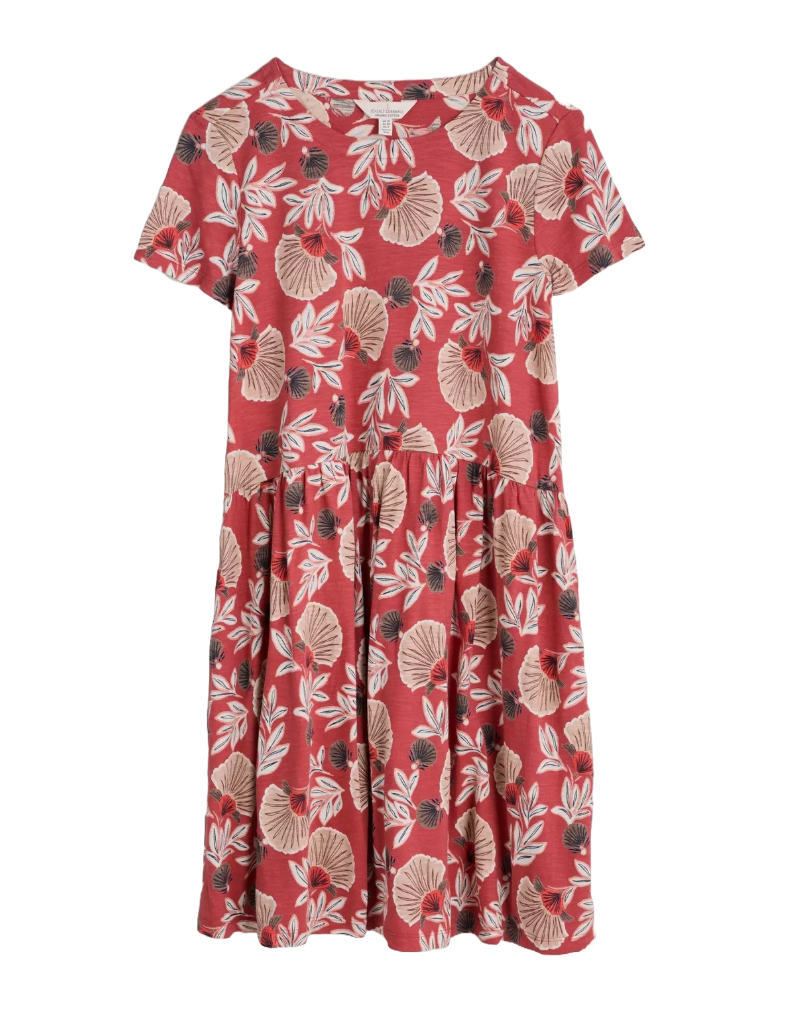 Experience comfort and style in our Sea Mirror dress. Made from soft and breathable jersey cotton, it features a bold floral Seasalt print, flattering flared shape with gentle gathers, and hidden pockets. Perfect for any occasion, falling just above the knee.