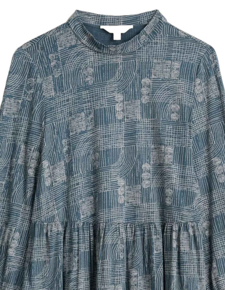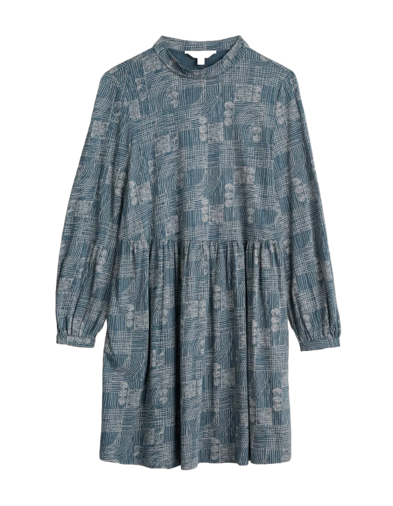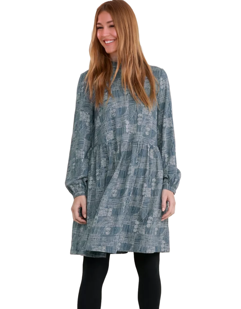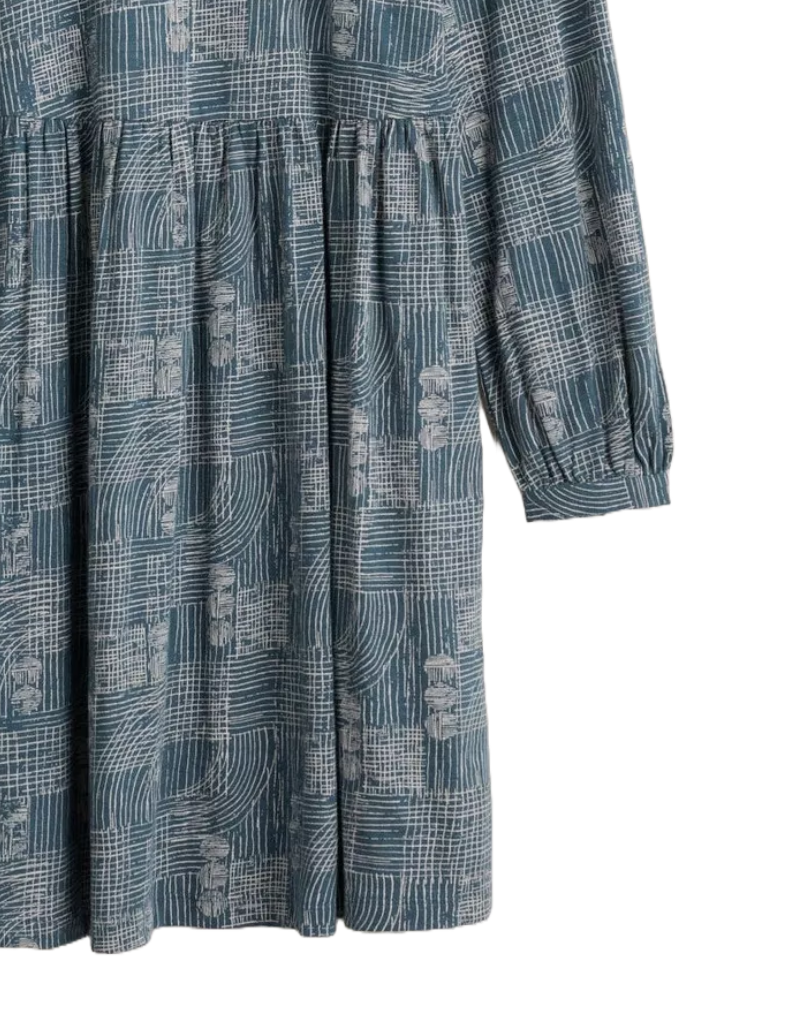 Women's Selven Dress in Blue Hatched Landscape Deep Tea