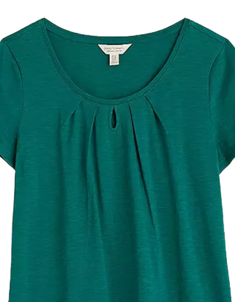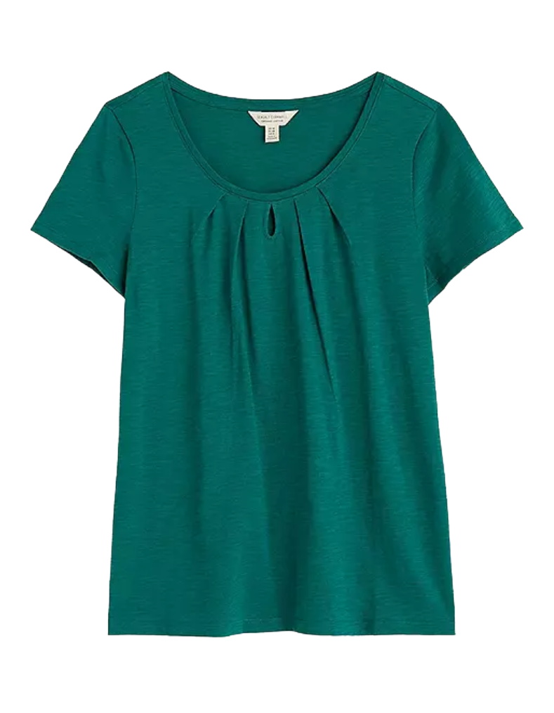 Women's Short Sleeve Appletree Keyhole Detail T-Shirt in Green Petite
