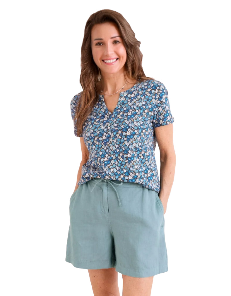 Effortlessly style your summer wardrobe with our organic cotton top. Its notched neckline and subtle flared shape provide a comfortable fit while keeping you cool. Pair it with narrow crops or culottes for a chic and breathable look.