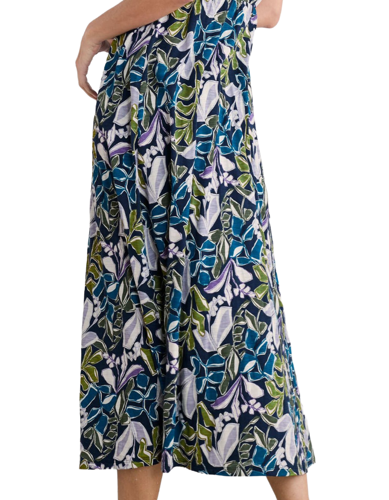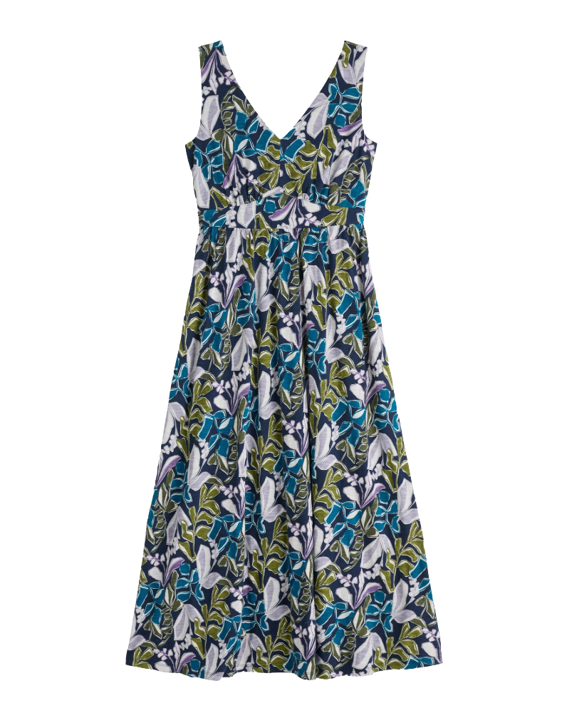 Women's Sleeveless Polmanter Dress in Linear Leaves Maritime
