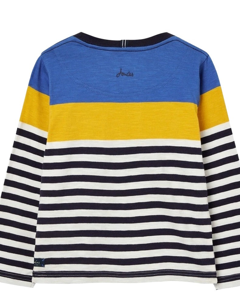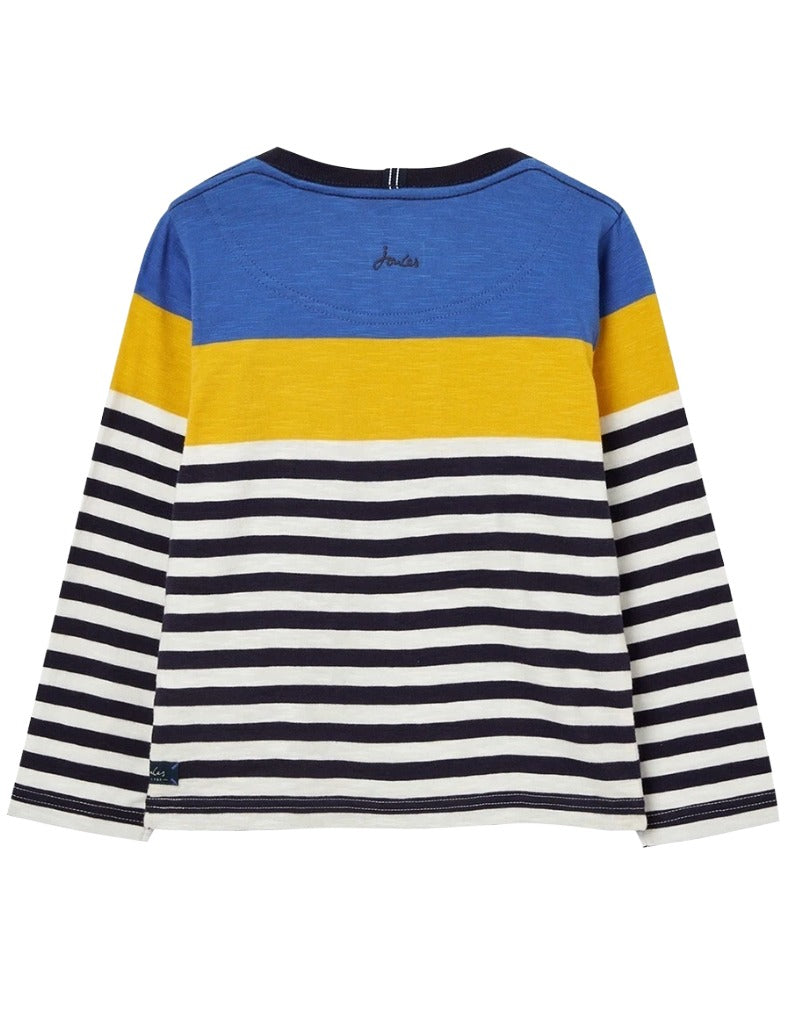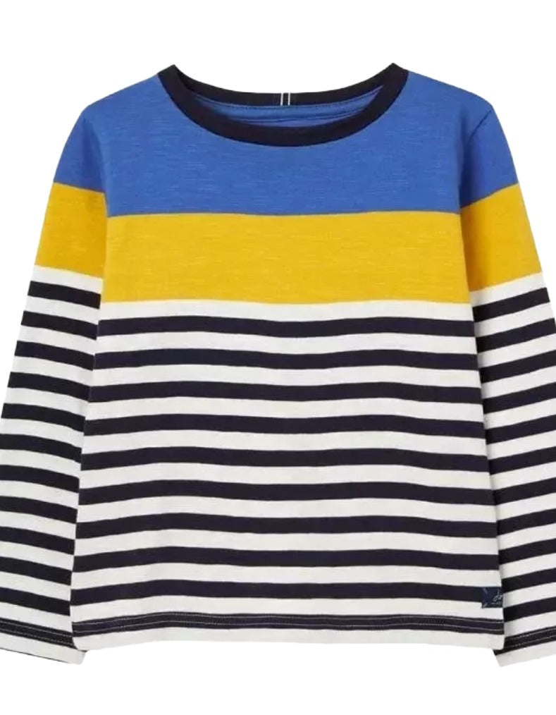 This Boy’s Long Sleeve Striped Whitlock Crew T-shirt from Joules features soft cotton fabric for breathable comfort and durability. Its classic striped design in blue offers timeless style, while long sleeves provide added warmth. Ideal for everyday wear, this T-shirt balances practicality with a smart, casual look.