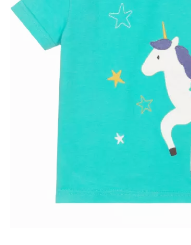 Upgrade your little girl's wardrobe with our Frugi Girl's Short Sleeve Unicorn Avery Applique Top in Pacific Aqua. Made from soft organic cotton, this top features a playful unicorn appliqué on the front. With popper fastenings for sizes up to 4 years, dressing your little one has never been easier.