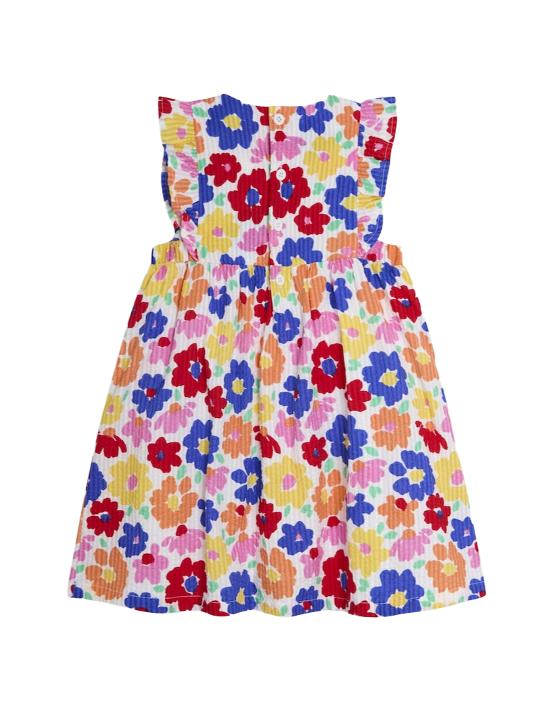 Jojo Maman Babe Floral Frill Shoulder Summer Dress in Fucshia Pink