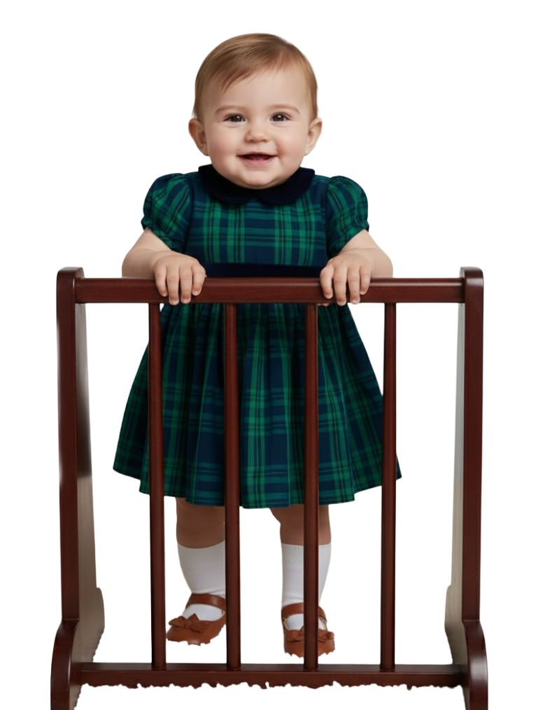 The JoJo Maman Bébé Girls Tartan Party Dress in Green combines classic style with practical details for festive occasions. Crafted from 100% cotton with a soft lining and netted underskirt, it ensures comfort and a charming silhouette. The button-back design allows for easy dressing, while the breathable fabric supports all-day wear. Easy care instructions make maintenance simple, requiring a gentle machine wash and cool ironing to keep the dress looking its best. Ideal for dressing up with tights, this tartan dress offers a timeless look for your little one’s party wardrobe.