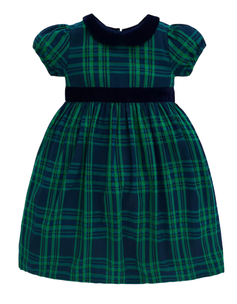 JoJo Maman Bébé Girls Tartan Party Dress in Green