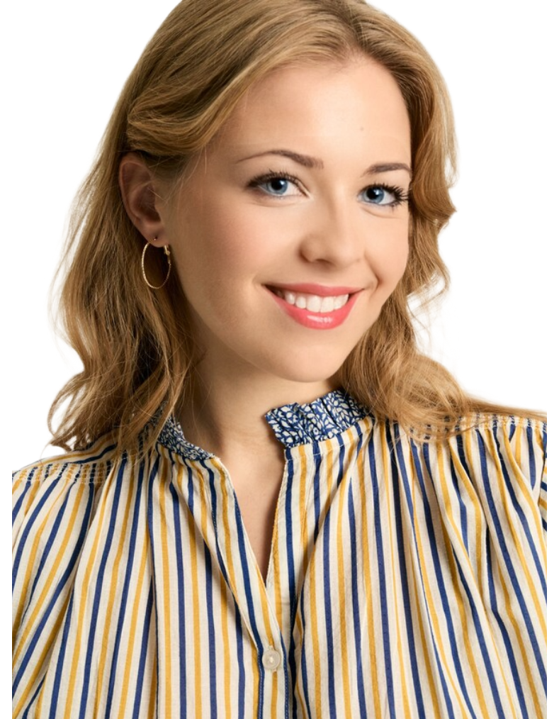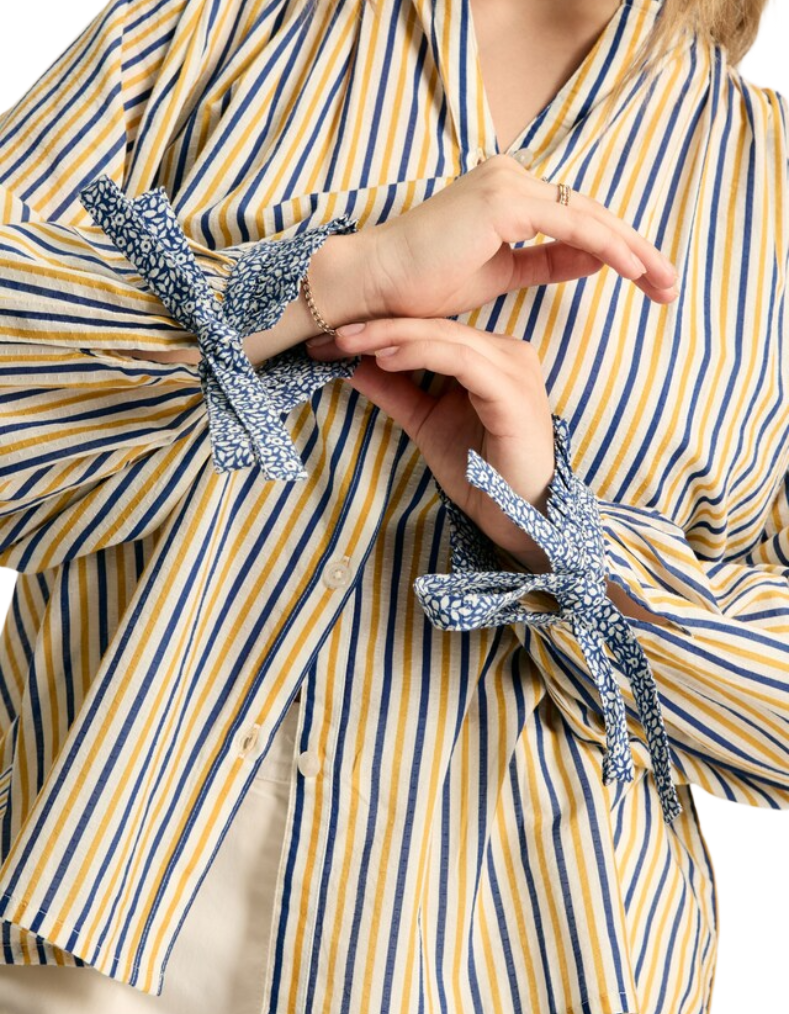 Women's Anna Frill Neck Striped Blouse in Yellow/Blue
