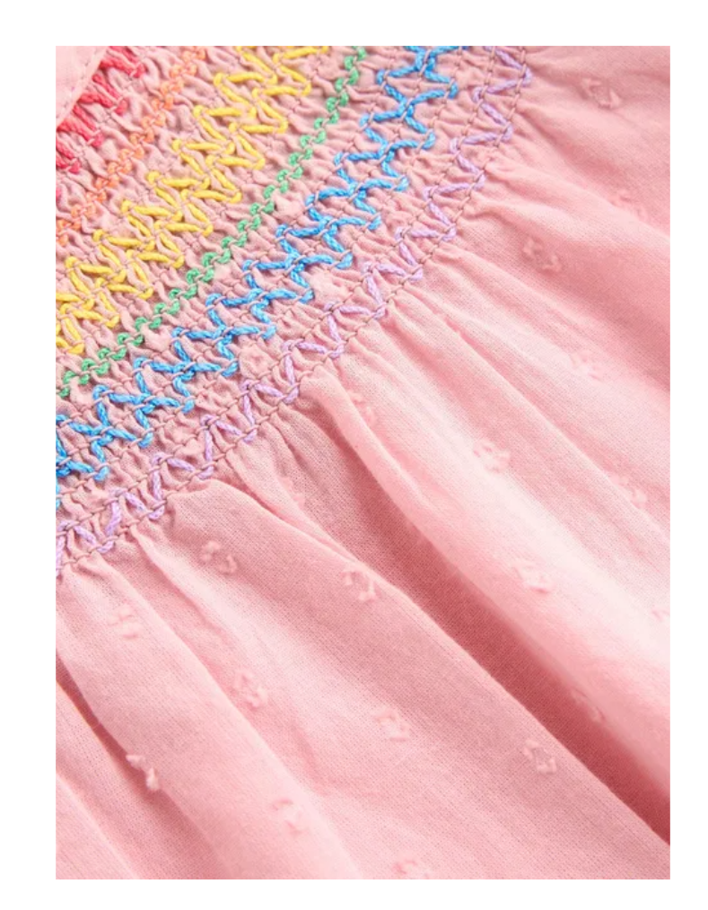 Mini Boden Girls Frilly Woven Smocked Top in Blossom Pink