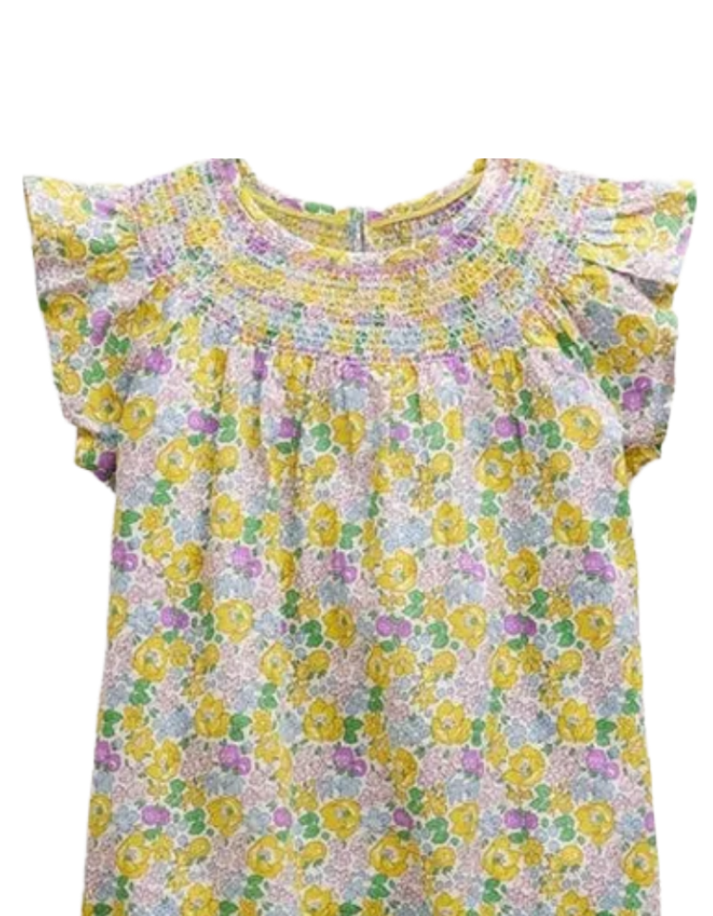 This Mini Boden Girls Frilly Woven Smocked Top in Blossom Pink features a full, floaty design enhanced by delicate flutter sleeves and detailed smocking across the chest. Crafted for both style and comfort, it pairs effortlessly with leggings or cycle shorts, creating an adorable yet practical outfit ideal for everyday wear.