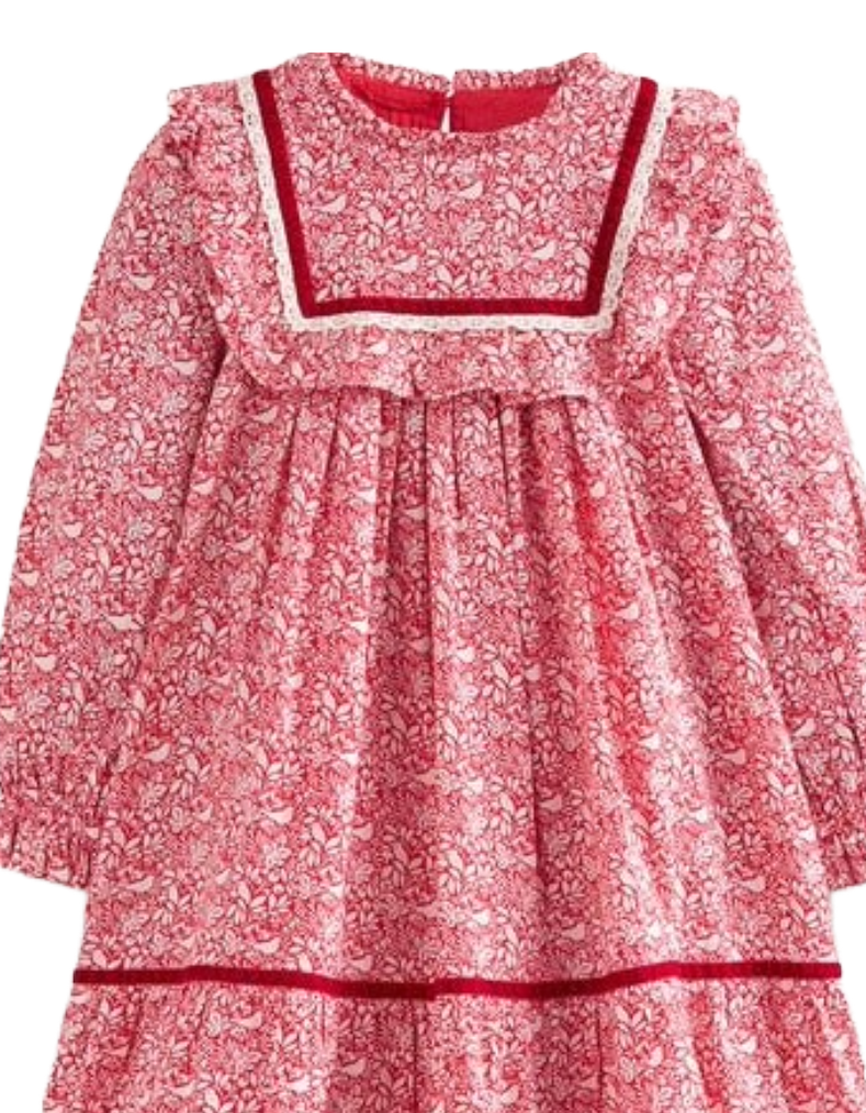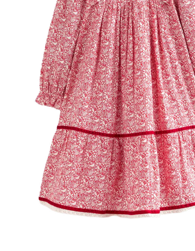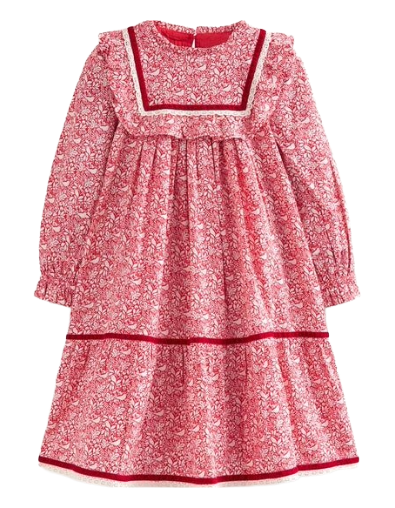 Mini Boden Girls Lace Trim Nostalgic Dress in Rockabilly Red Robins