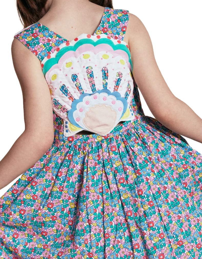The Mini Boden Zadie Applique Back Dress in Multi Flowerbed Shell is designed to keep little ones comfortable and stylish all summer. Its full, swishy skirt allows freedom of movement, while vibrant appliqué details add playful, eye-catching flair. Crafted with bright colors and thoughtful design, this dress is perfect for energetic days and special occasions alike.