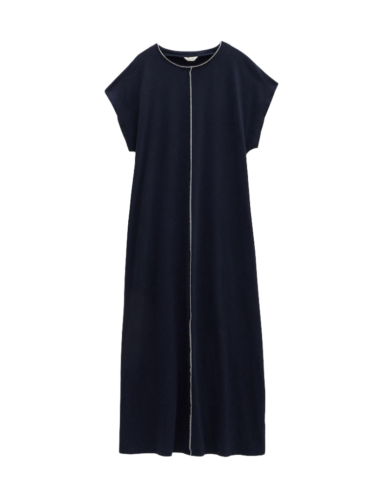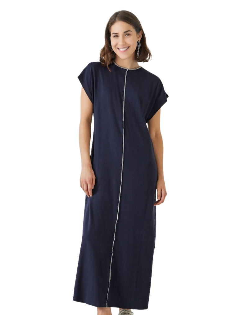 The Women's 100% Cotton Alessia Jersey Maxi Dress in Navy Blue combines timeless style with exceptional comfort. Crafted from breathable, soft cotton, this maxi dress offers a relaxed fit that moves effortlessly with you. Its deep navy hue adds a sophisticated touch, making it ideal for both casual outings and evening occasions. Designed with an expert focus on quality and wearability, this dress is a versatile addition to any wardrobe, delivering enduring style through premium natural fabric.