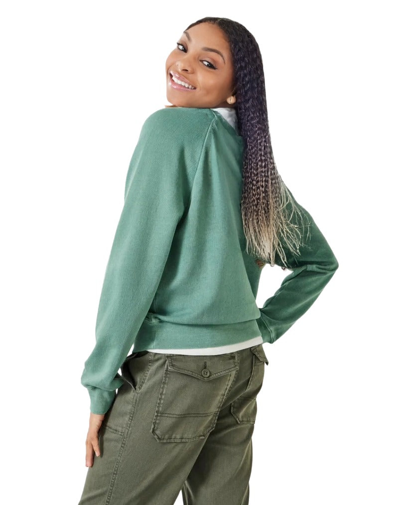 Elevate your casual look with the Women's Amayah Ruffle Detail Sweatshirt in Green. Crafted from thick cotton in a sophisticated smokey green, its subtle ruffle accents add a refined touch that keeps leisurewear effortlessly stylish. Perfect for layering, this piece combines comfort with timeless design and expert detailing.