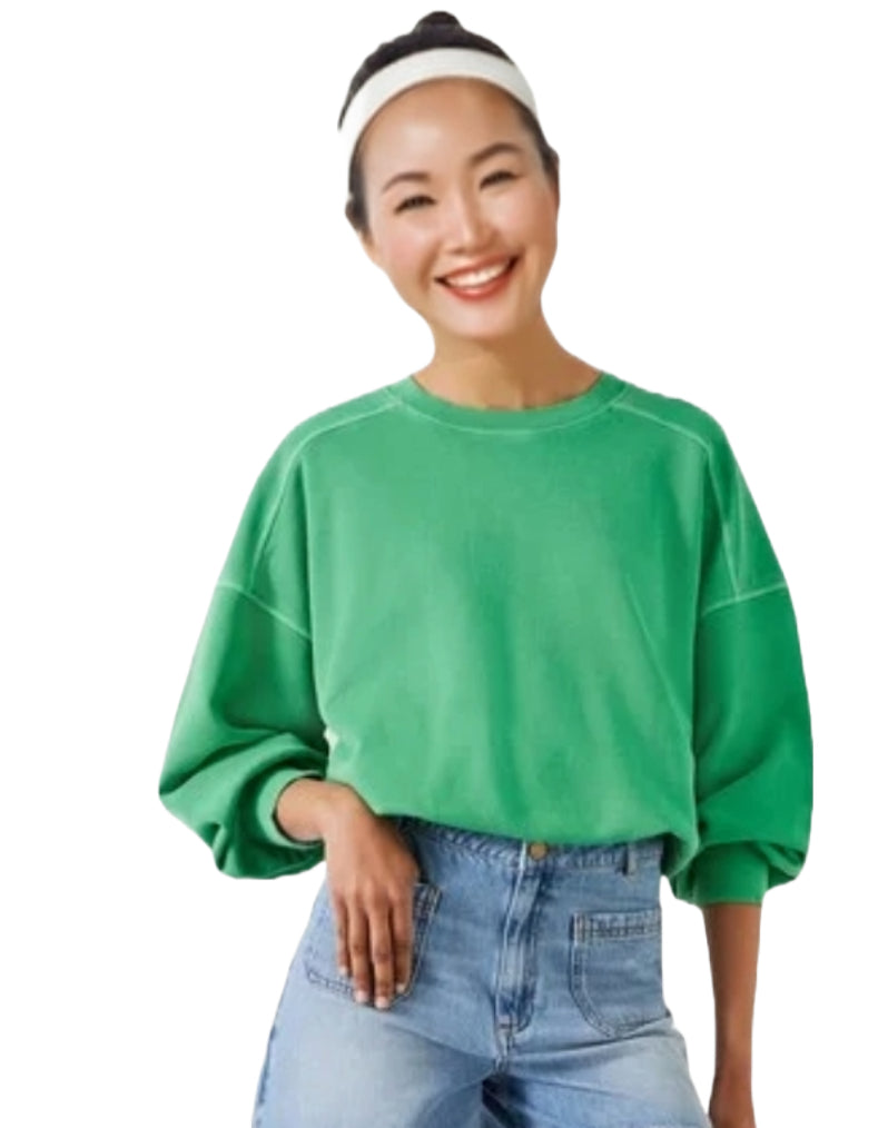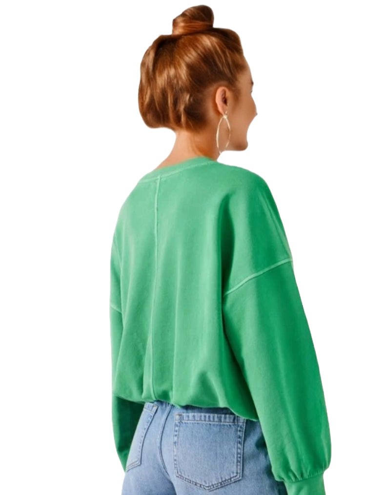 Introducing the Blanca sweatshirt: the latest trend in bubble hems! With its elasticated hem, this sweatshirt creates a naturally cropped shape that eliminates the need for perfect tucking. Pair it with relaxed denim shorts for an effortlessly cool look. Don't miss out on this must-have style!
