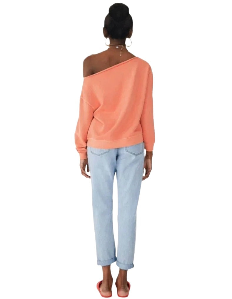 The Celine sweatshirt delivers effortless shoulder-baring style with its intentionally slouchy silhouette. Slip one side down for an asymmetric, off-shoulder aesthetic that captures the season's relaxed elegance. Rich coral tones evoke warmth and movement, while the generous fit ensures comfort without compromise. Perfect for those seeking understated sophistication with a contemporary edge.