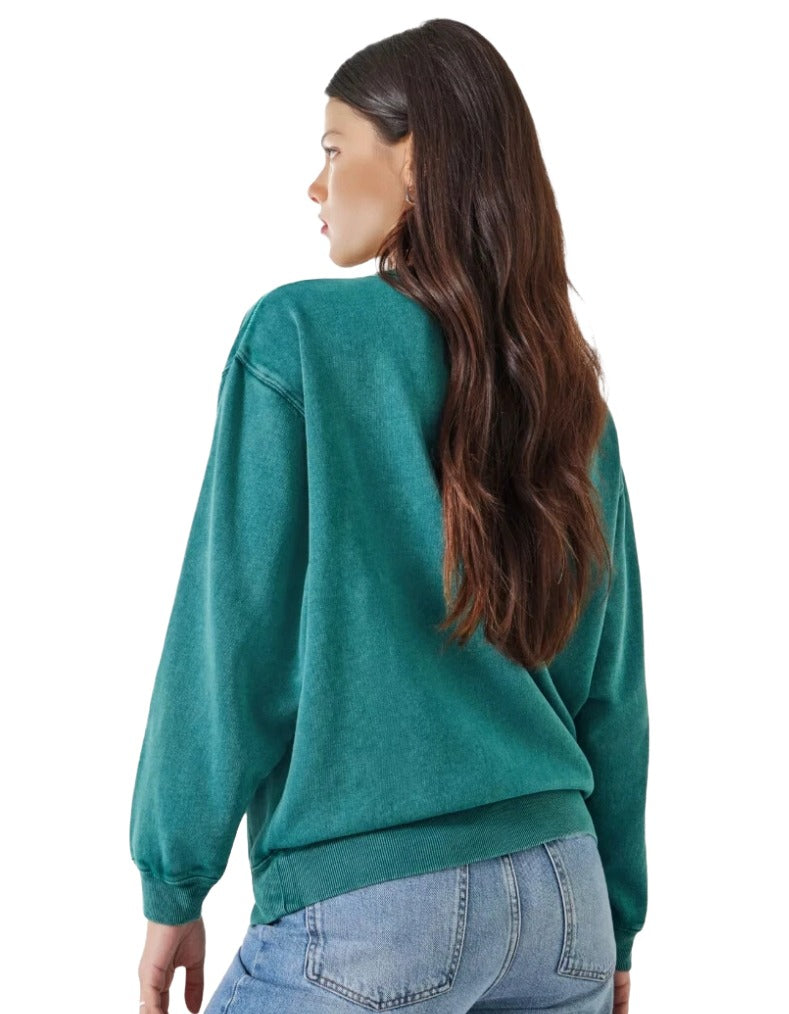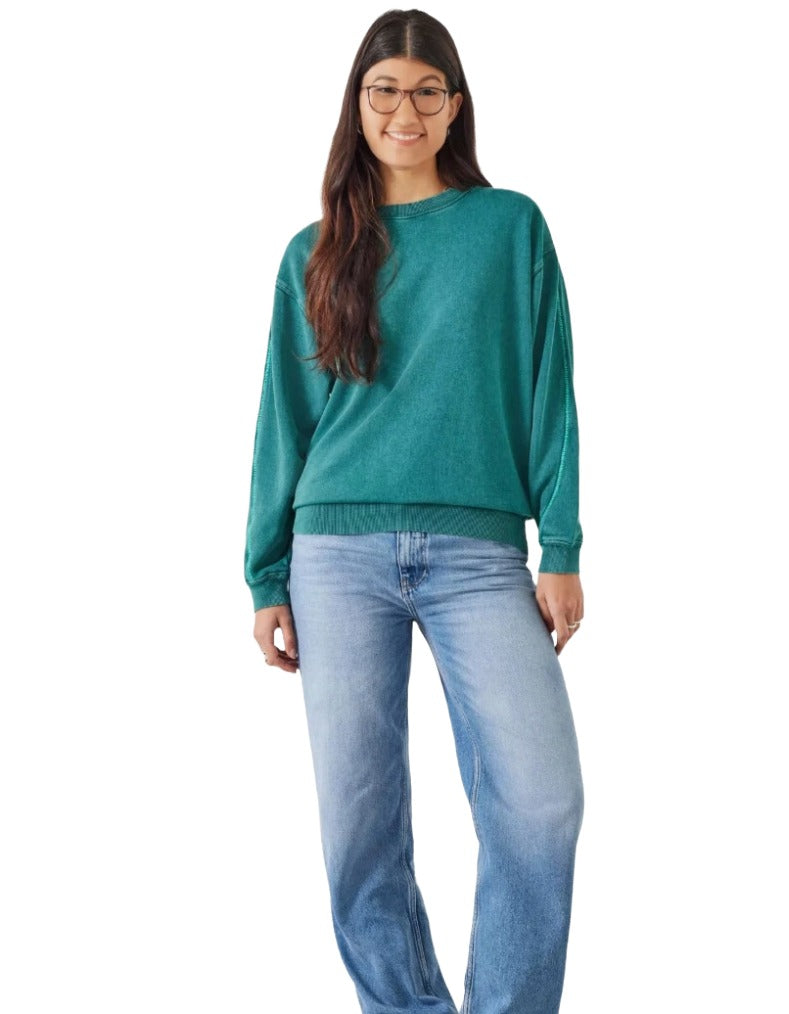 This Women's Contrast Stitch Detail Sweatshirt in Green combines effortless style with comfort. Featuring a classic crew neck, long sleeves, and soft cotton fabric, it ensures a relaxed fit perfect for casual daytime wear. The subtle contrast stitching adds a refined touch, making it a versatile piece for layering or solo wear. Please note, this item has minor imperfections.