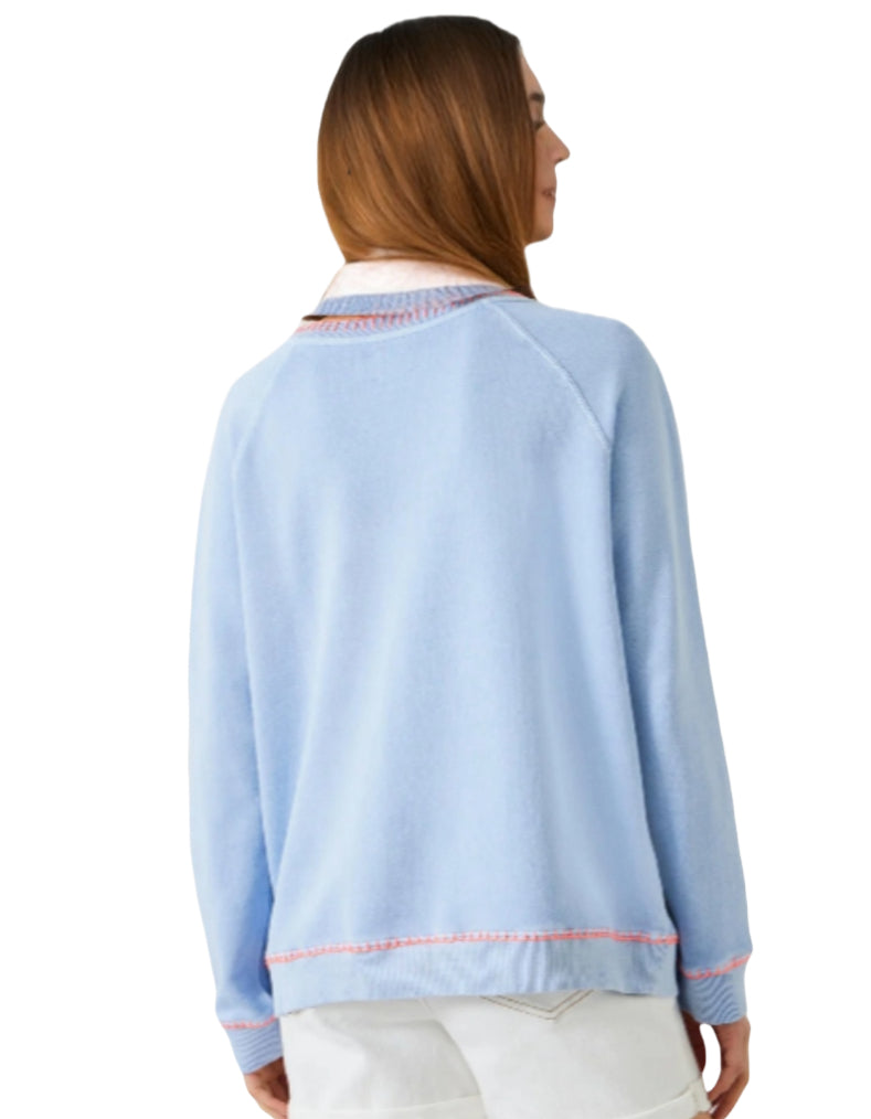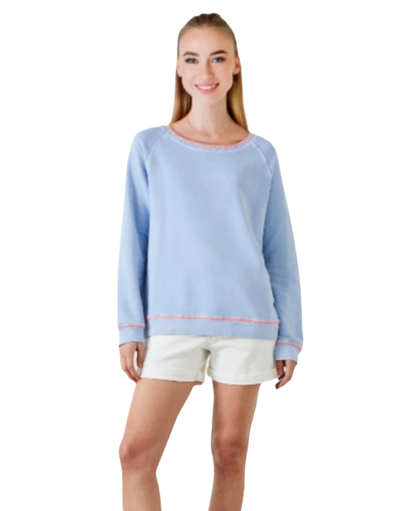 Add a pop of color to your loungewear with this raglan sweatshirt! Its relaxed fit and vibrant topstitch detailing make it a bold and comfortable choice for the season. Perfect for a stylish and cozy look.